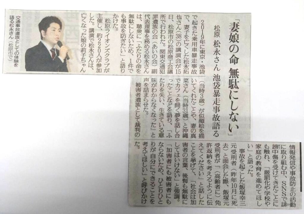 松永さんは交通事故撲滅、犯罪被害者支援の拡充、誹謗中傷問題の解決などに向けた活動を精力的に行っておられます。